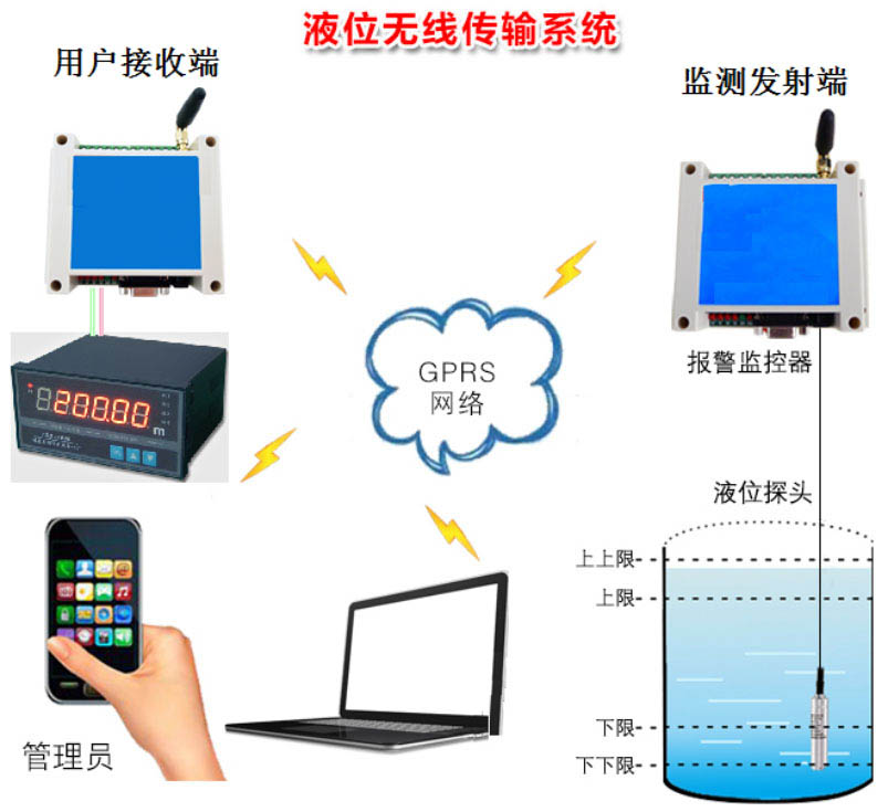 首先,檢測發(fā)射端通過液位傳感器采集水位,并通過GPRS 網(wǎng)絡(luò)將水位數(shù)據(jù)上傳至云平臺,這樣用戶就可以通過手機或者電腦查看實時水位。