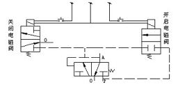 ① 開啟:在二位三通電磁先導閥的手動旋鈕處于與縱軸平行的“一”位置情況下,旋轉二位三通電磁先導閥的手動旋鈕,實現(xiàn)開啟手動操作,動作程序如自動開啟程序。